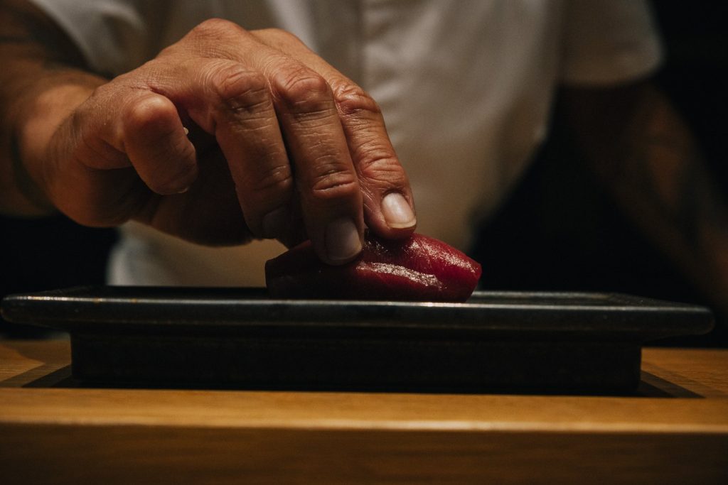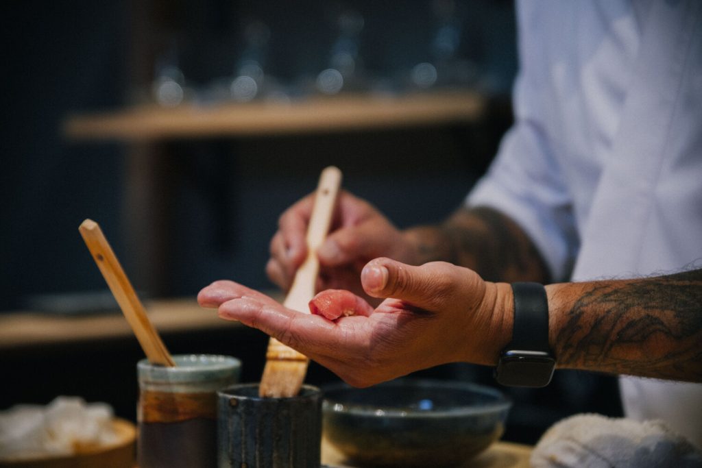 Break away from the conventional with a menu that goes beyond the typical parade of nigiri. Instead, be prepared for unique combinations that harmoniously merge Eastern and Western influences. One standout creation is the beet- and vodka-smoked salmon macaron, a testament to the chef’s innovative approach.